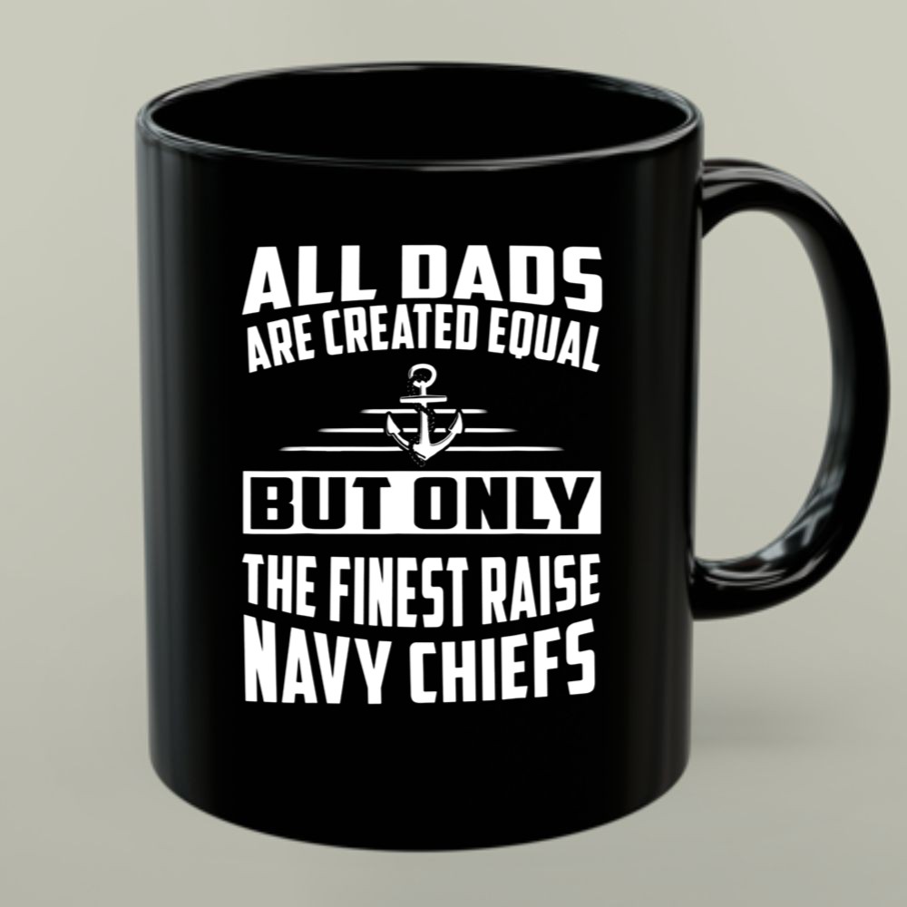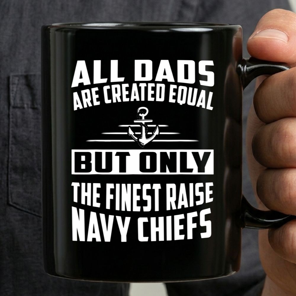 This design honors the unwavering commitment of Navy dads who shape the next generation of leaders. With bold typography, it captures the essence of pride and strength, celebrating the journey of those who raise Navy Chiefs. The black ceramic mug serves as a daily reminder of their significant role in a military family.