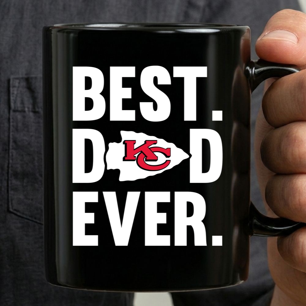 This design encapsulates the joy of sharing Kansas City football between a father and child. The phrase ‘BEST. DAD. EVER.’ alongside the iconic Chiefs logo reflects not just team pride, but also the legacy of love and support that defines their relationship. It’s a minimalist reminder of unforgettable moments spent cheering together at Arrowhead Stadium.