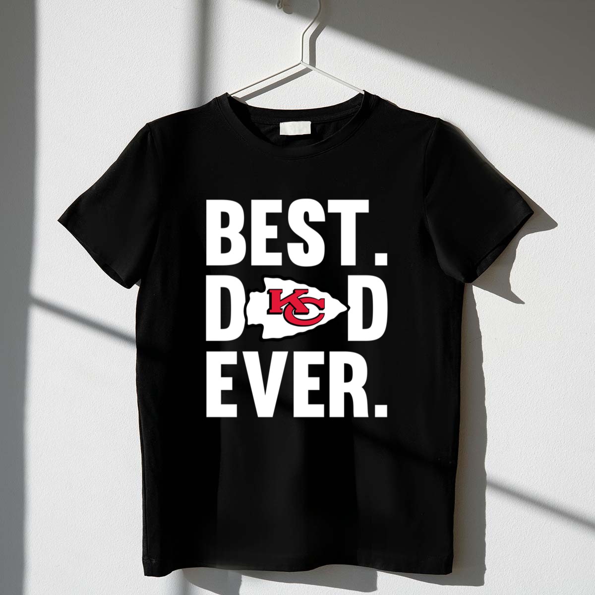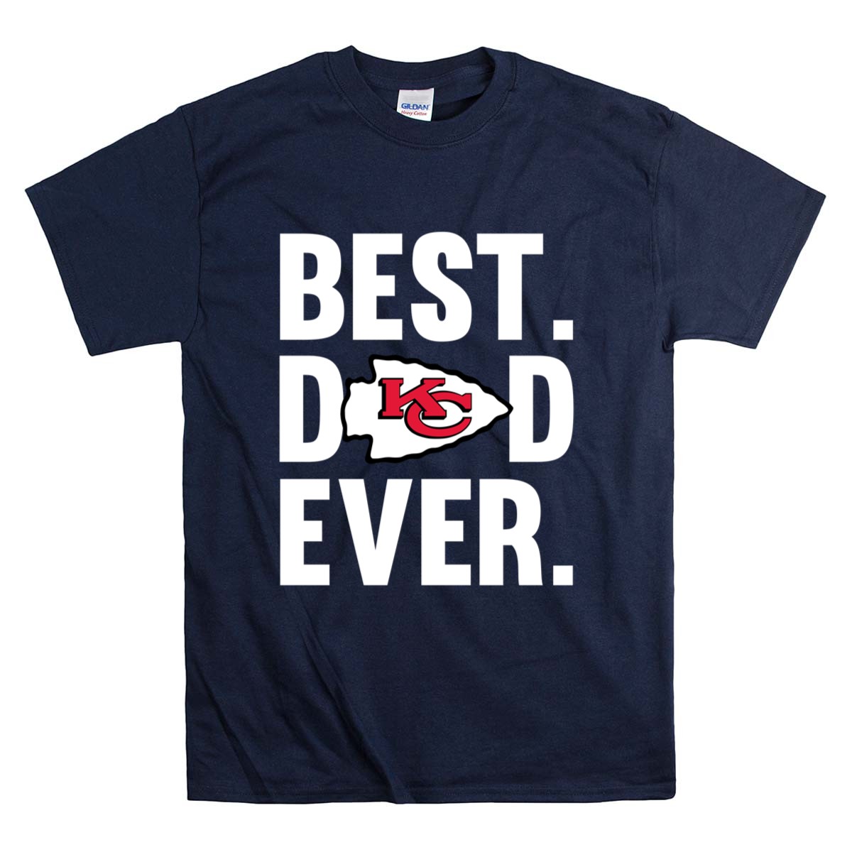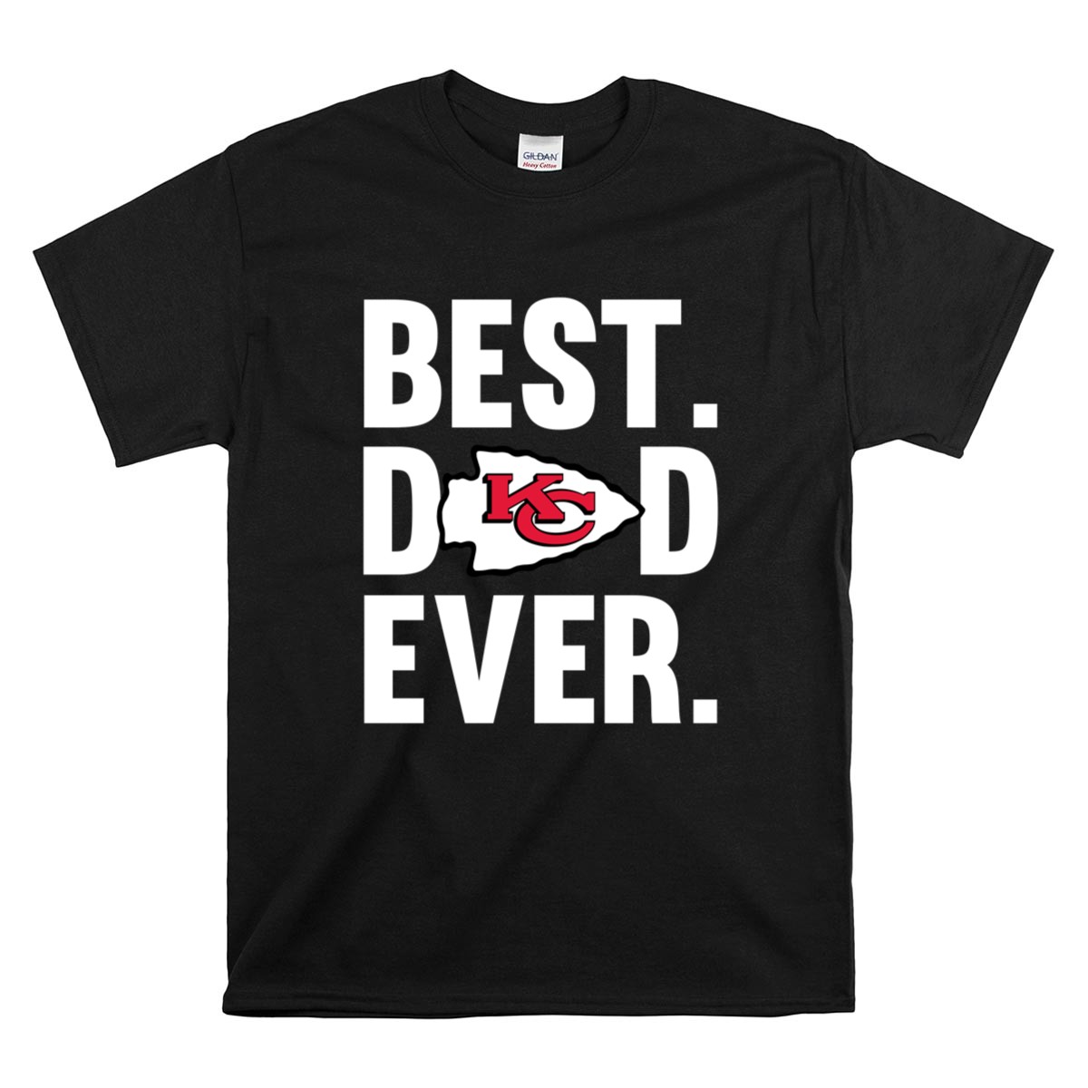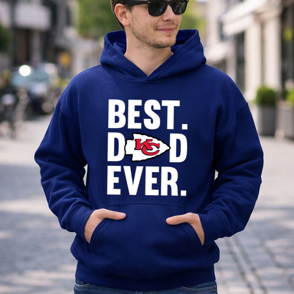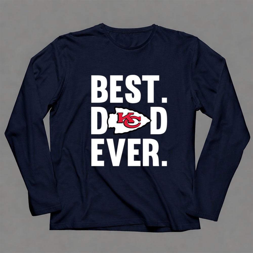 This shirt captures the essence of what it means to be a father and a devoted Kansas City Chiefs fan. The bold statement ‘BEST. DAD. EVER.’ paired with the iconic Chiefs logo speaks to the pride and love shared between a father and child, celebrating their connection through the passion of football.