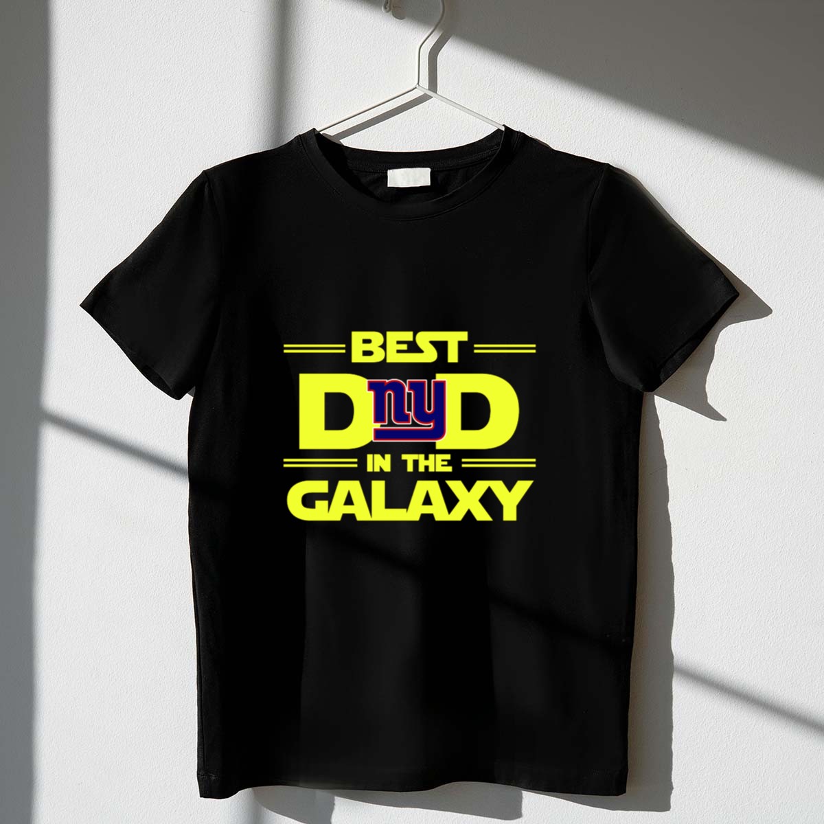 This design brings together the fun of Star Wars and the loyalty of a New York Giants fan, celebrating the unique bond between a dad and his family. The bold typography and playful mashup reflect the joy and pride that comes with cheering for the Giants, making it a heartfelt tribute to sports enthusiasts.