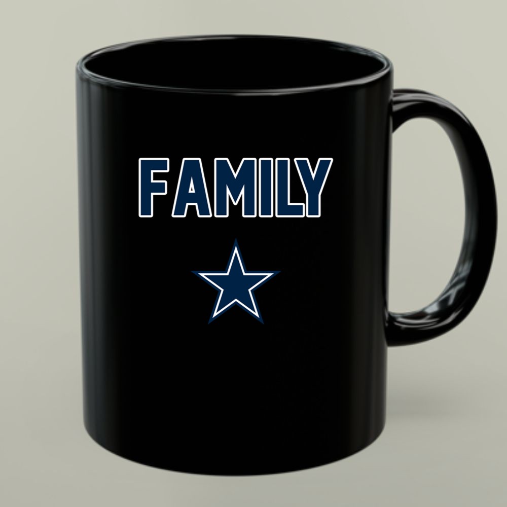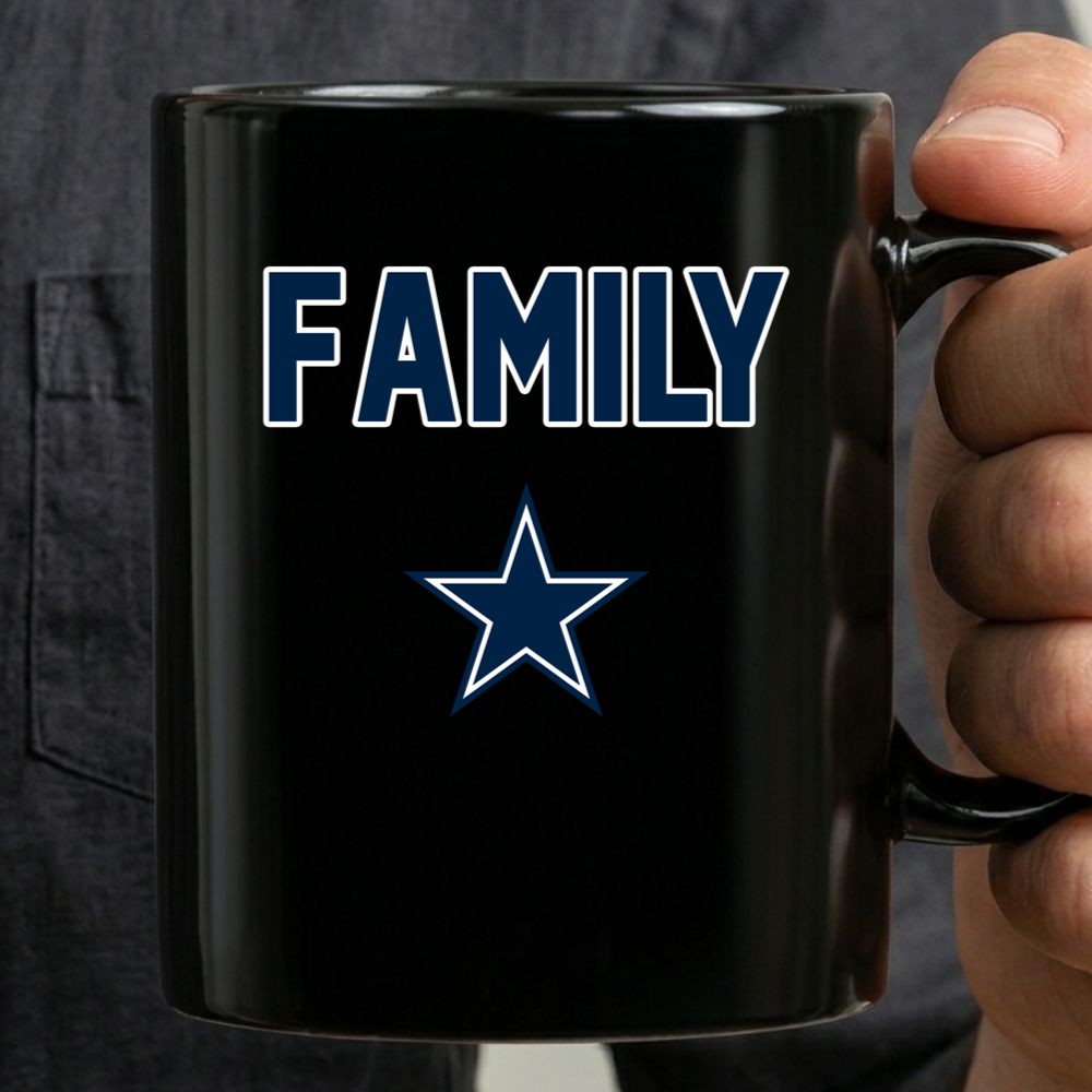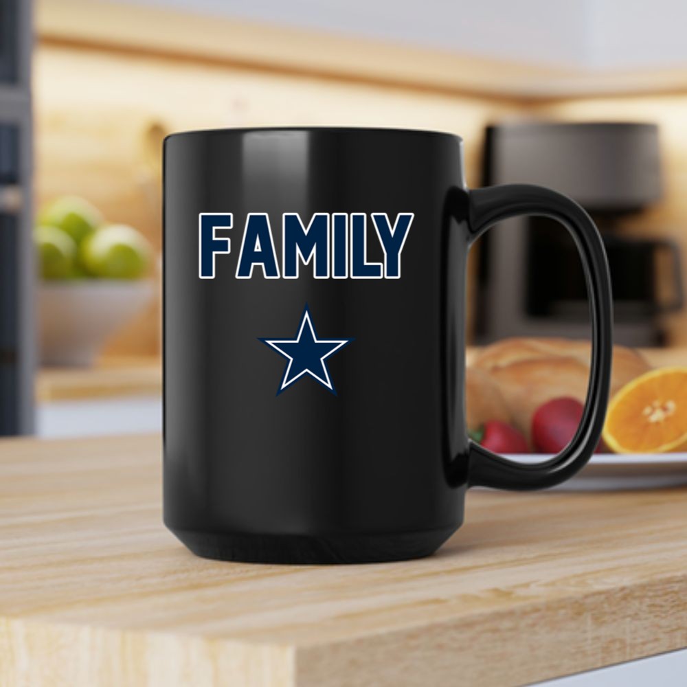 This design captures the essence of family unity and the excitement of being a Dallas Cowboys fan. The bold typography and star logo reflect the pride that resonates within every household that bleeds Cowboys blue. It’s more than just a mug; it’s a cherished reminder of the love for the team and each other.