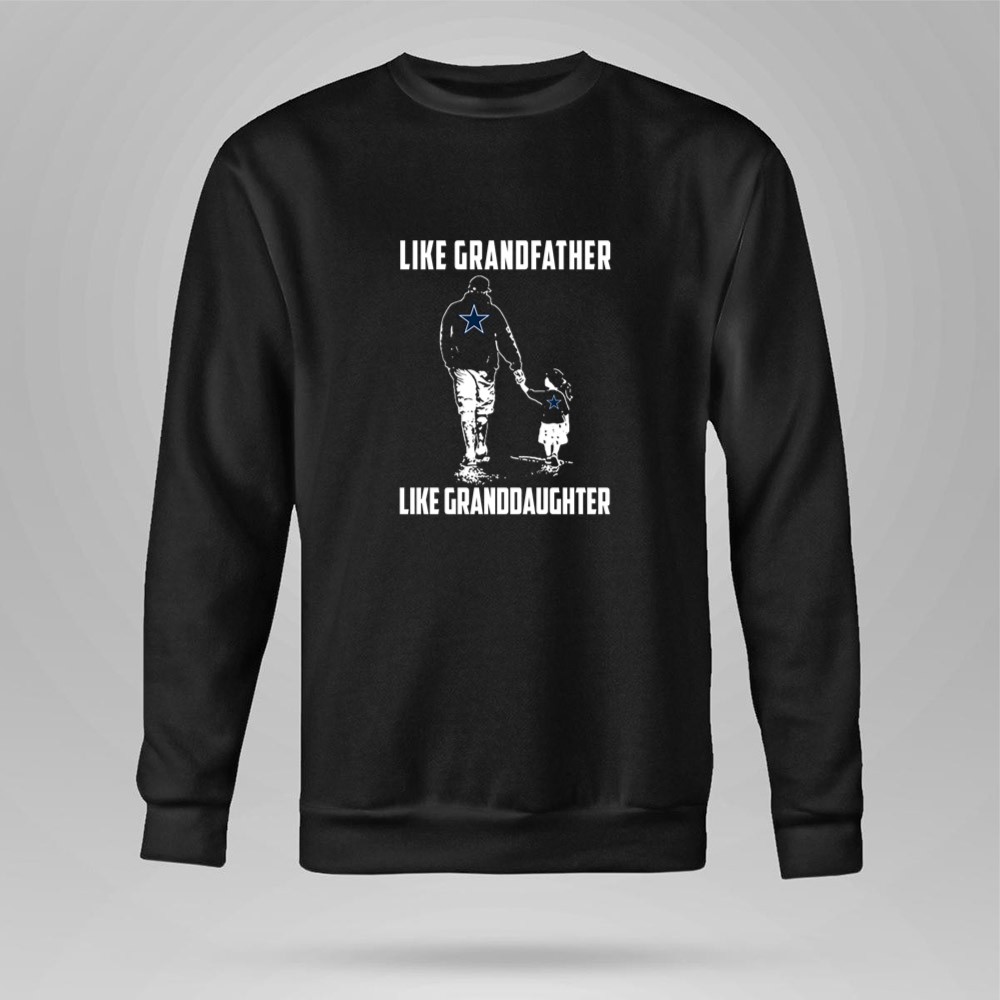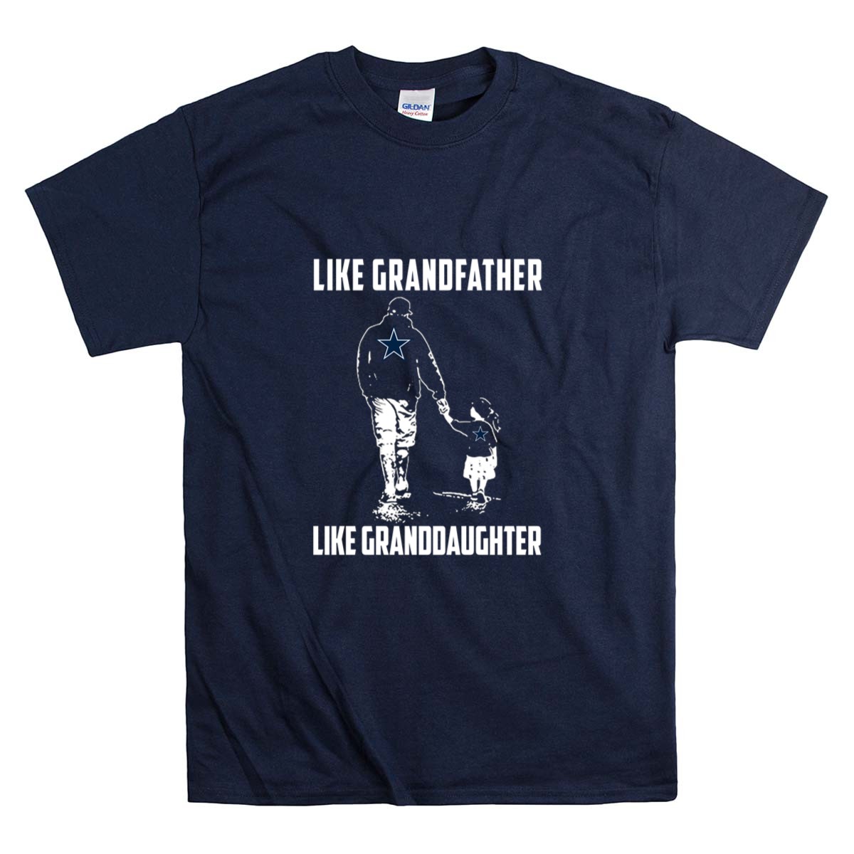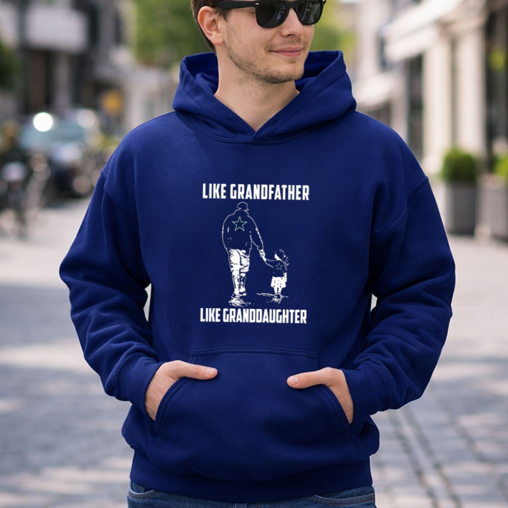 This design encapsulates the cherished relationship between grandfathers and granddaughters, celebrating their shared love for the Dallas Cowboys. The minimalist style paired with the powerful ‘LIKE GRANDFATHER LIKE GRANDDAUGHTER’ quote serves as a heartfelt reminder of the deep-rooted family legacy and pride that comes with supporting the team together. It’s more than just a tee; it’s a symbol of connection and loyalty passed through generations.