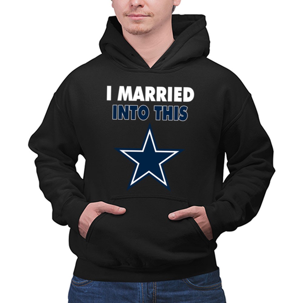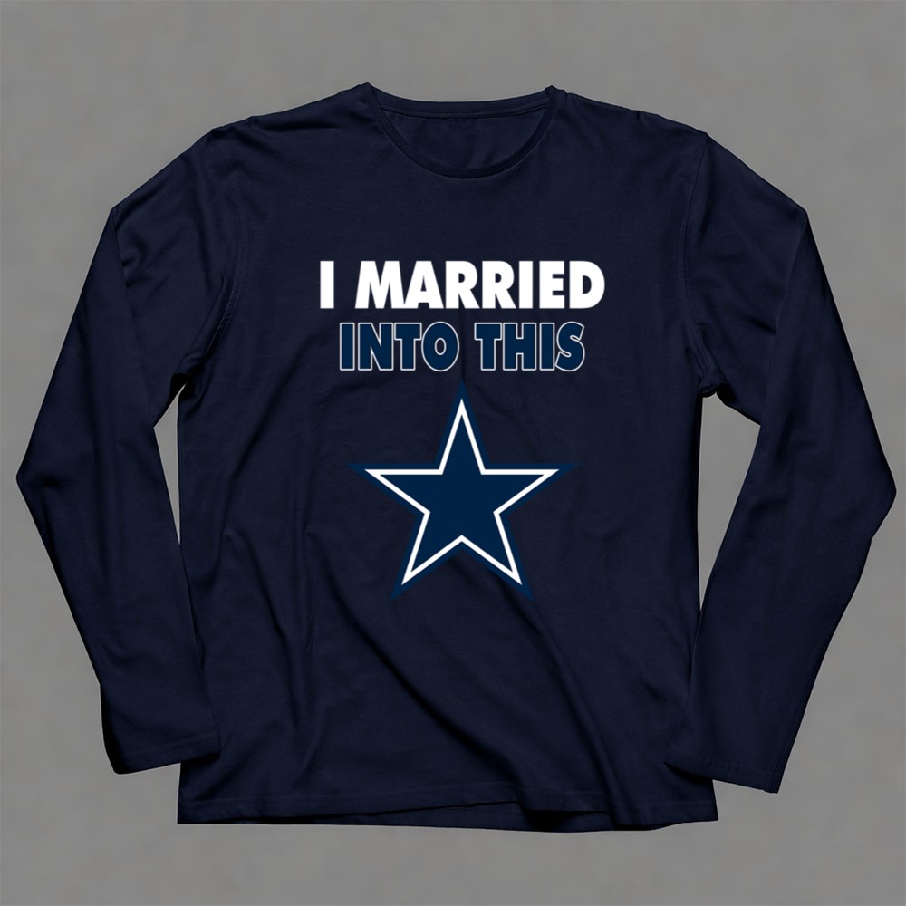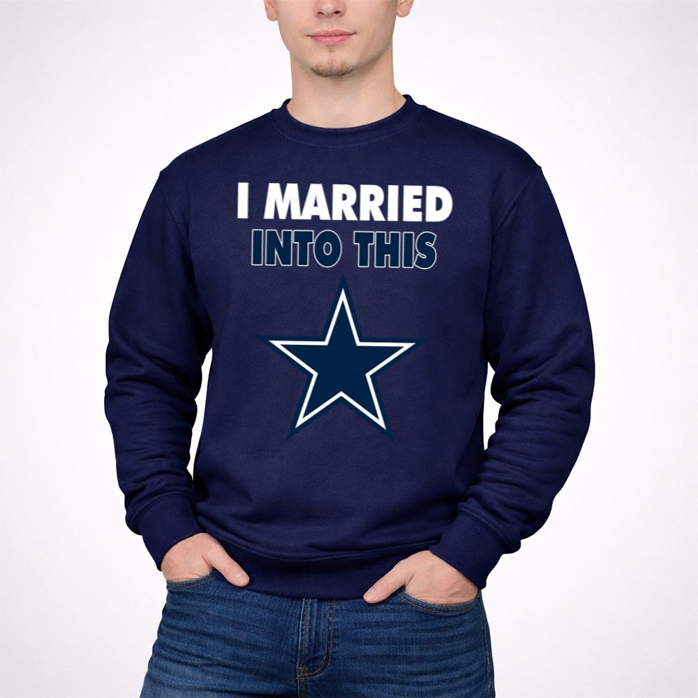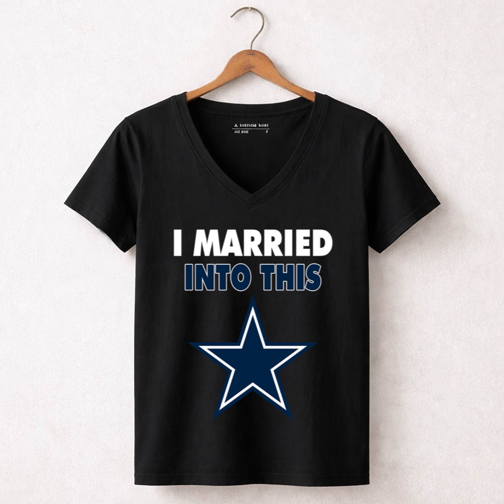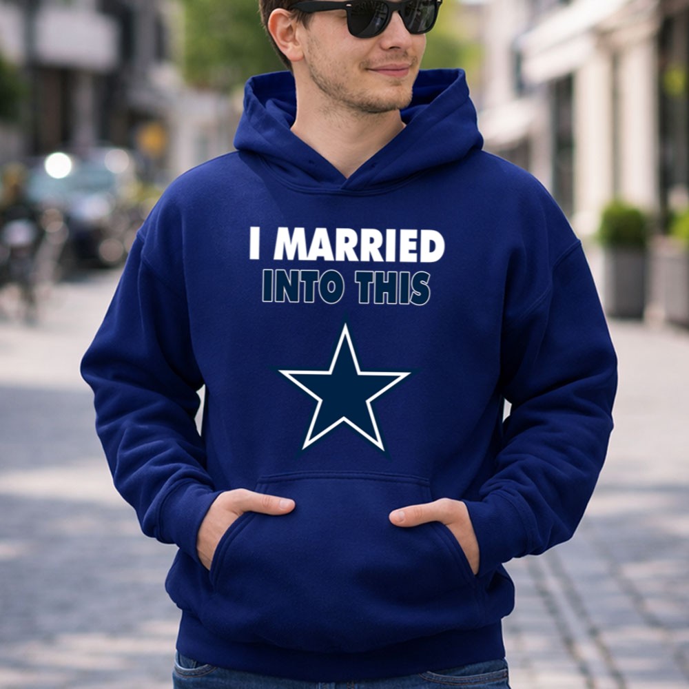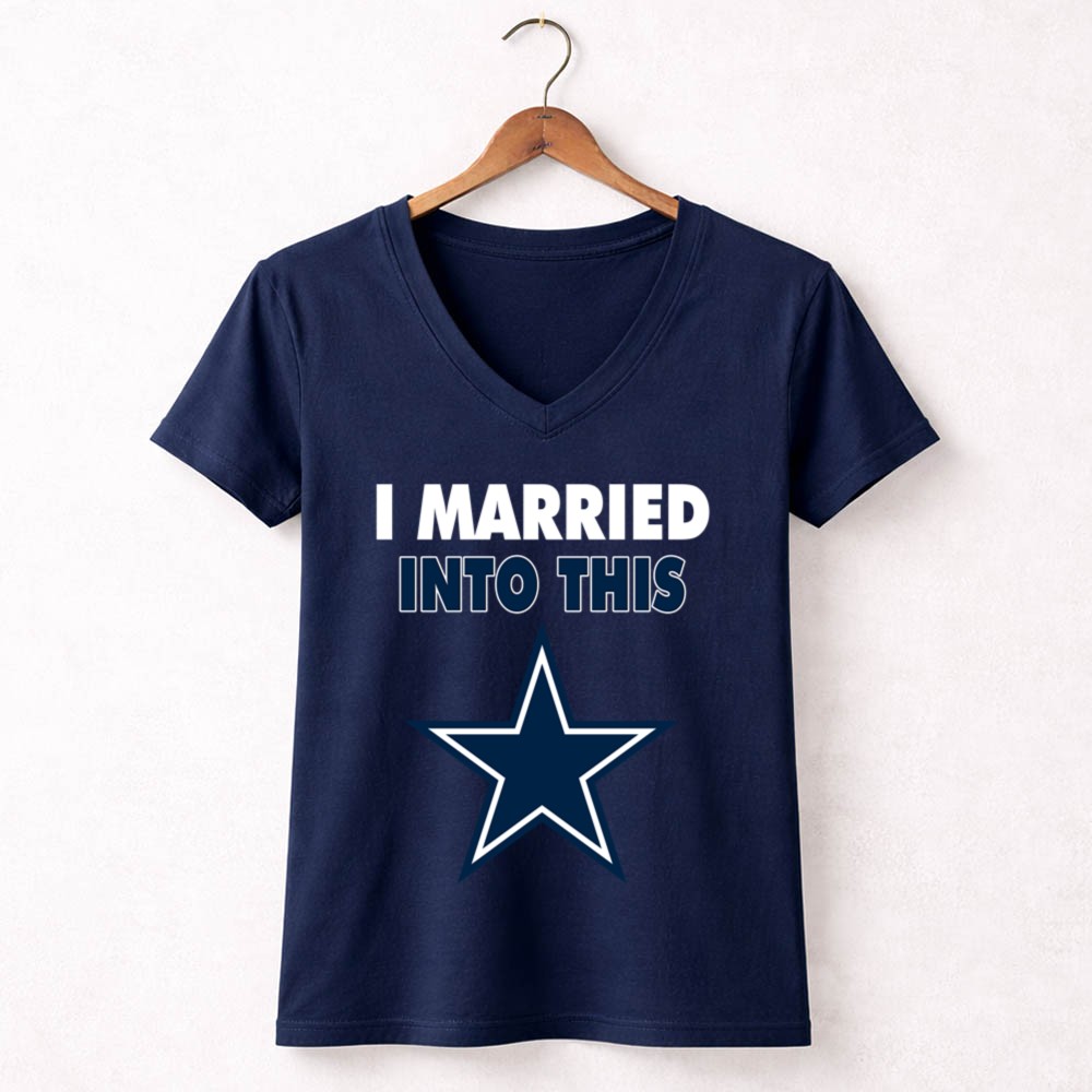 This design captures the essence of merging love with the excitement of Dallas Cowboys fandom. The playful slogan, paired with modern typography and the iconic blue star emblem, reflects the joy of being part of a family that thrives on NFL spirit. It’s a tribute to the camaraderie and loyalty that comes with marrying into a sports-loving community.