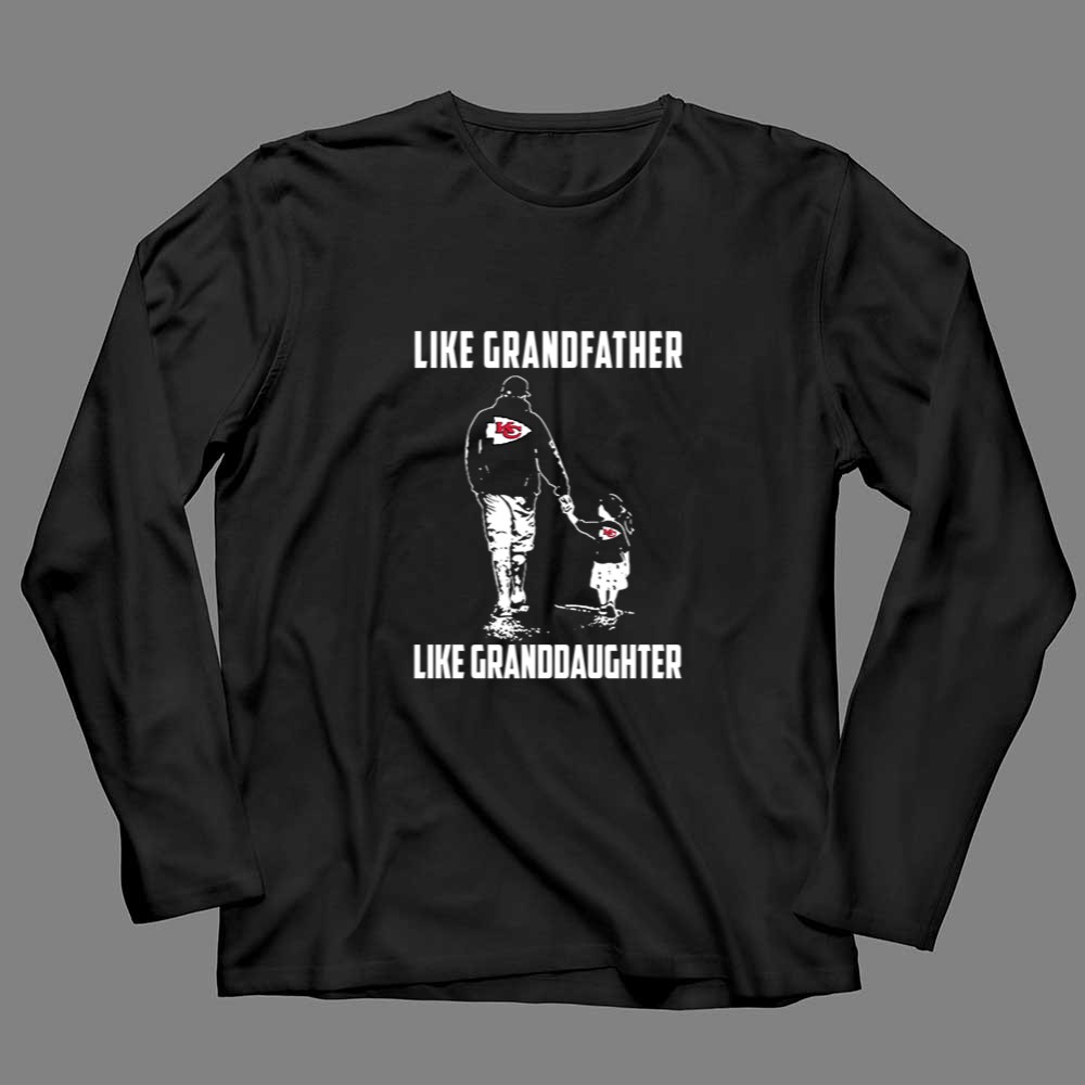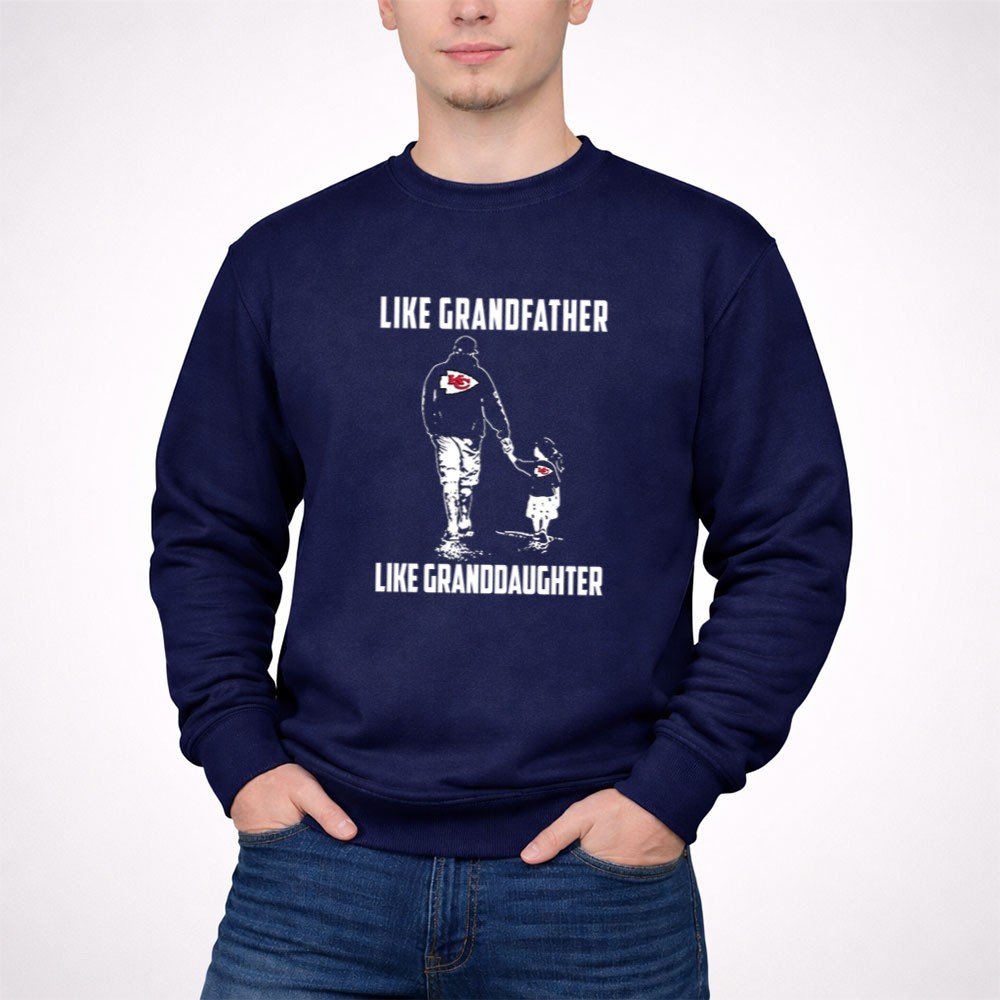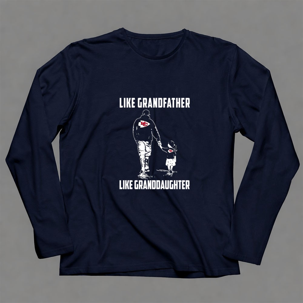 Inspired by the cherished relationship between grandfathers and granddaughters, this design captures the essence of being a lifelong Kansas City Chiefs fan. The minimalist art reflects a profound love for family and sports, making it a heartfelt tribute to the shared pride in the Kansas City sports heritage. Wearing this tee is not just about supporting a team; it’s about celebrating a legacy.