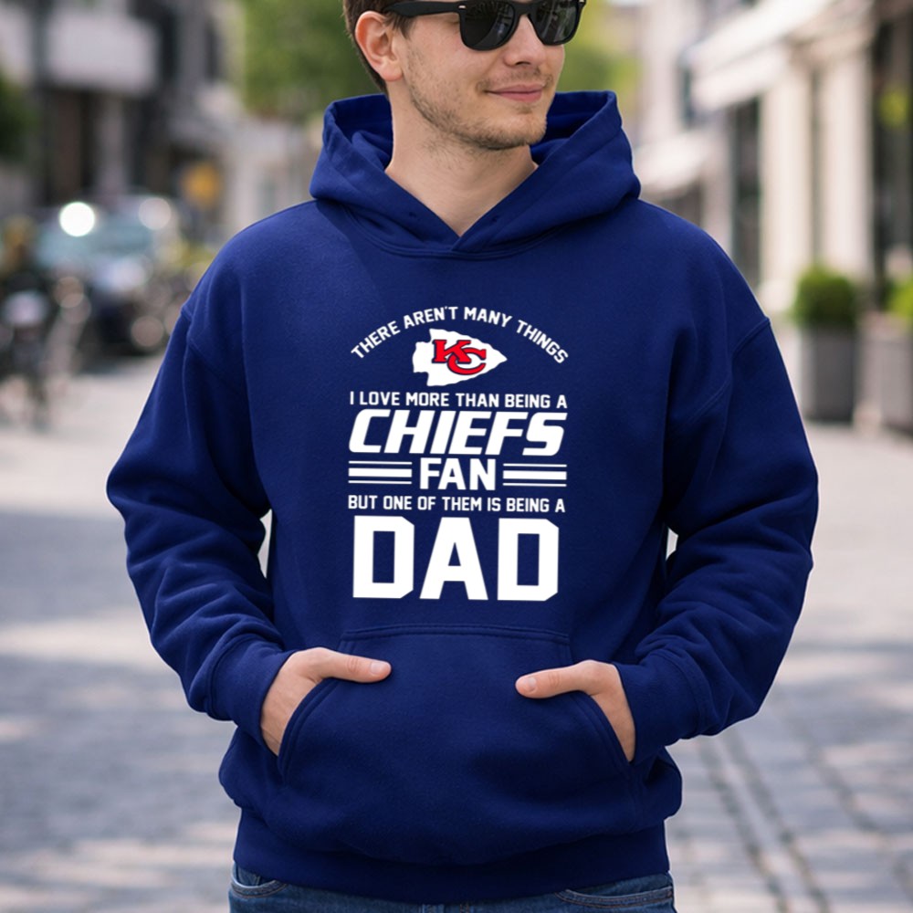 This design reflects the deep-rooted connection between being a dedicated Chiefs fan and the joy of fatherhood. The quote captures the essence of shared sports moments that create lasting memories between dads and their kids. With its modern design and bold typography, it serves as a celebration of team spirit and family bonding.