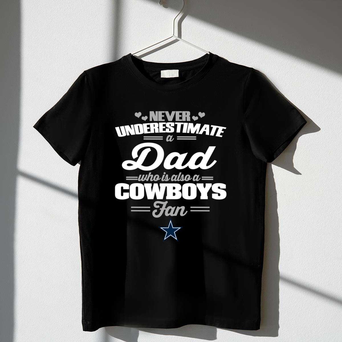 This design captures the essence of unwavering loyalty, blending the joy of fatherhood with the pride of being a Dallas Cowboys fan. The playful statement encourages a sense of camaraderie, celebrating both family bonds and the thrill of game day. It’s a heartfelt reminder that being a dad and a fan is not just about the sport; it’s about the memories made and shared.