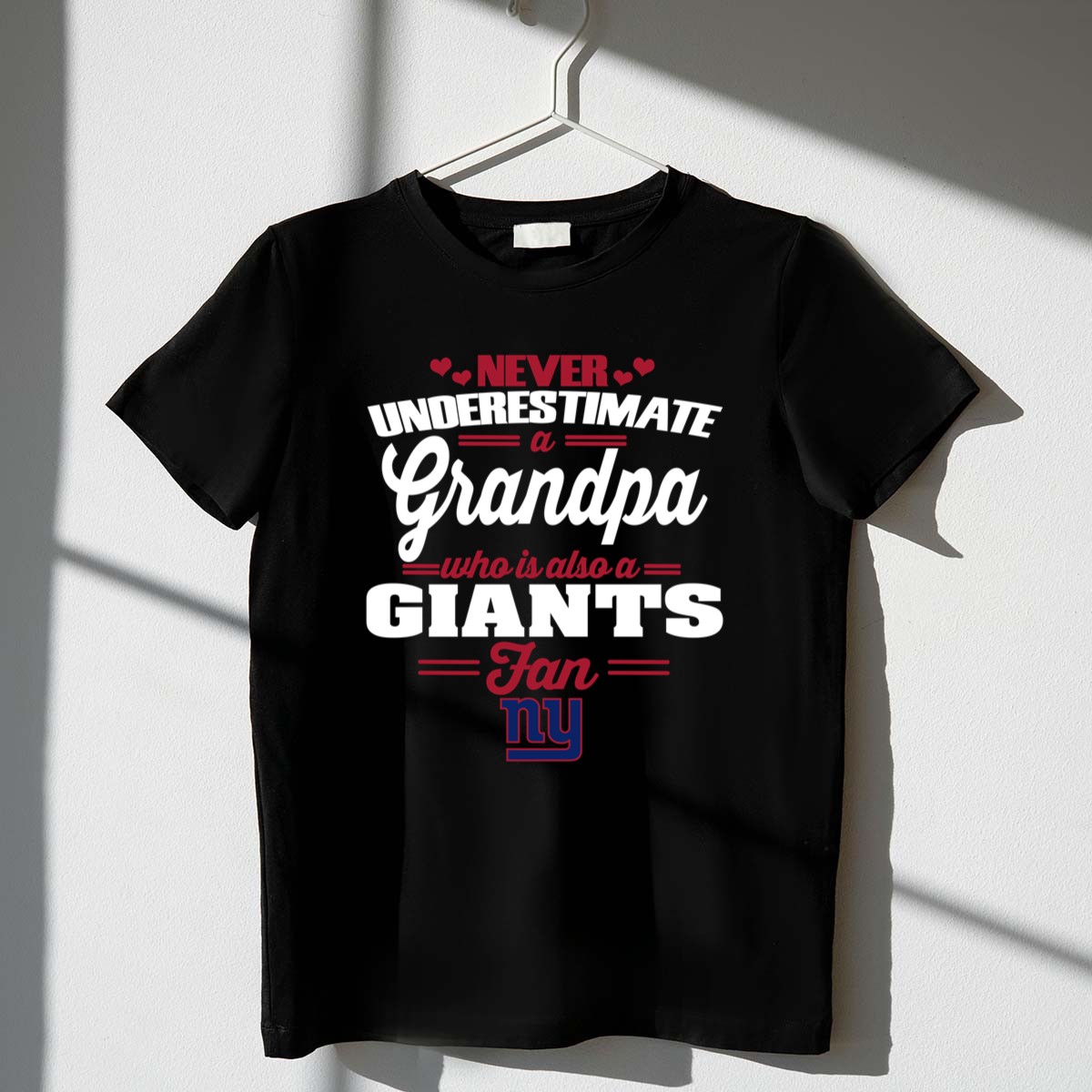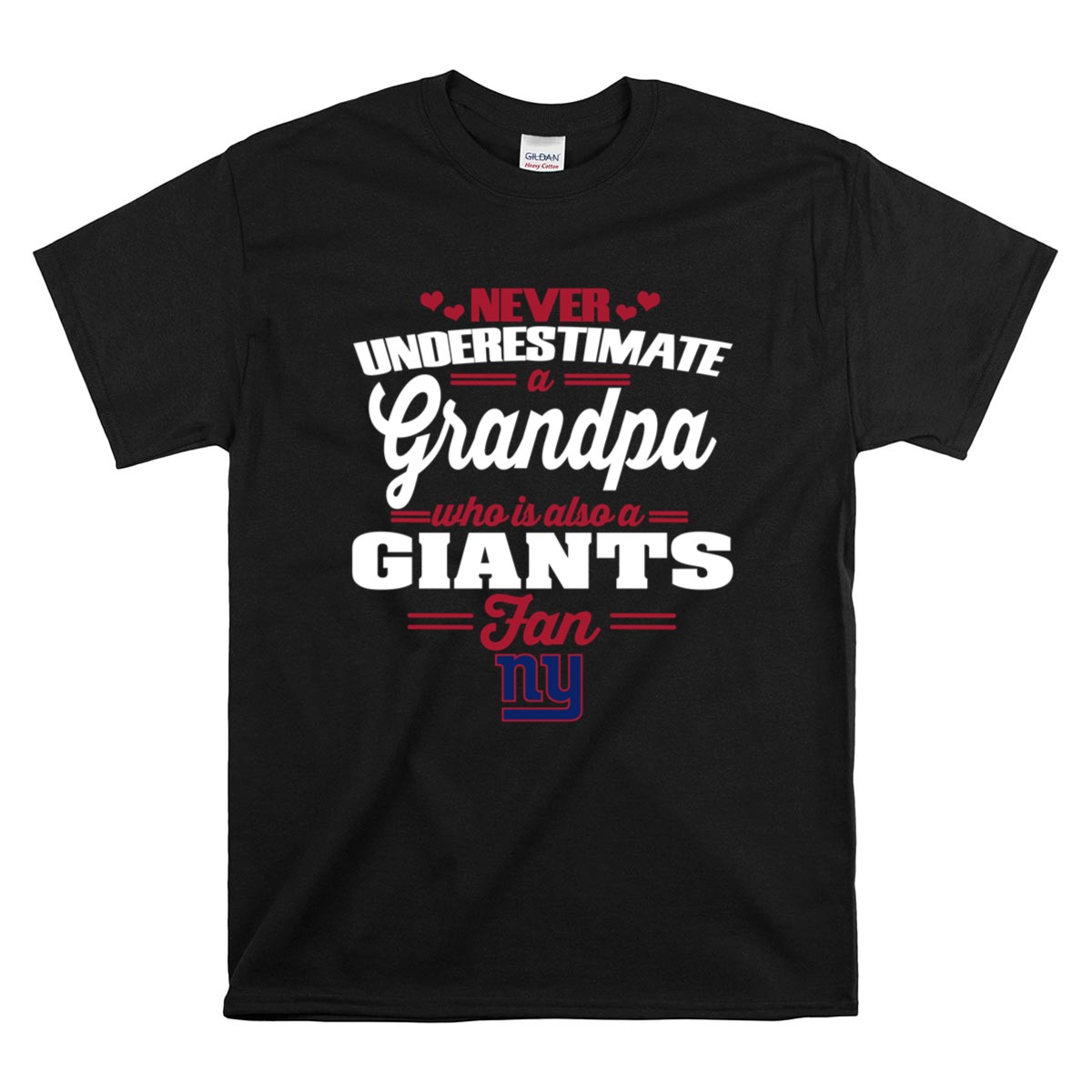 This design embodies the spirit of family and football, merging bold typography with a playful nod to the New York Giants. It’s a heartfelt reminder of the enduring bond shared between generations, celebrating not just a love for the game, but the laughter and memories created on game days. Every glance at this shirt evokes pride and loyalty, making it a cherished piece for any Giants fan grandpa.