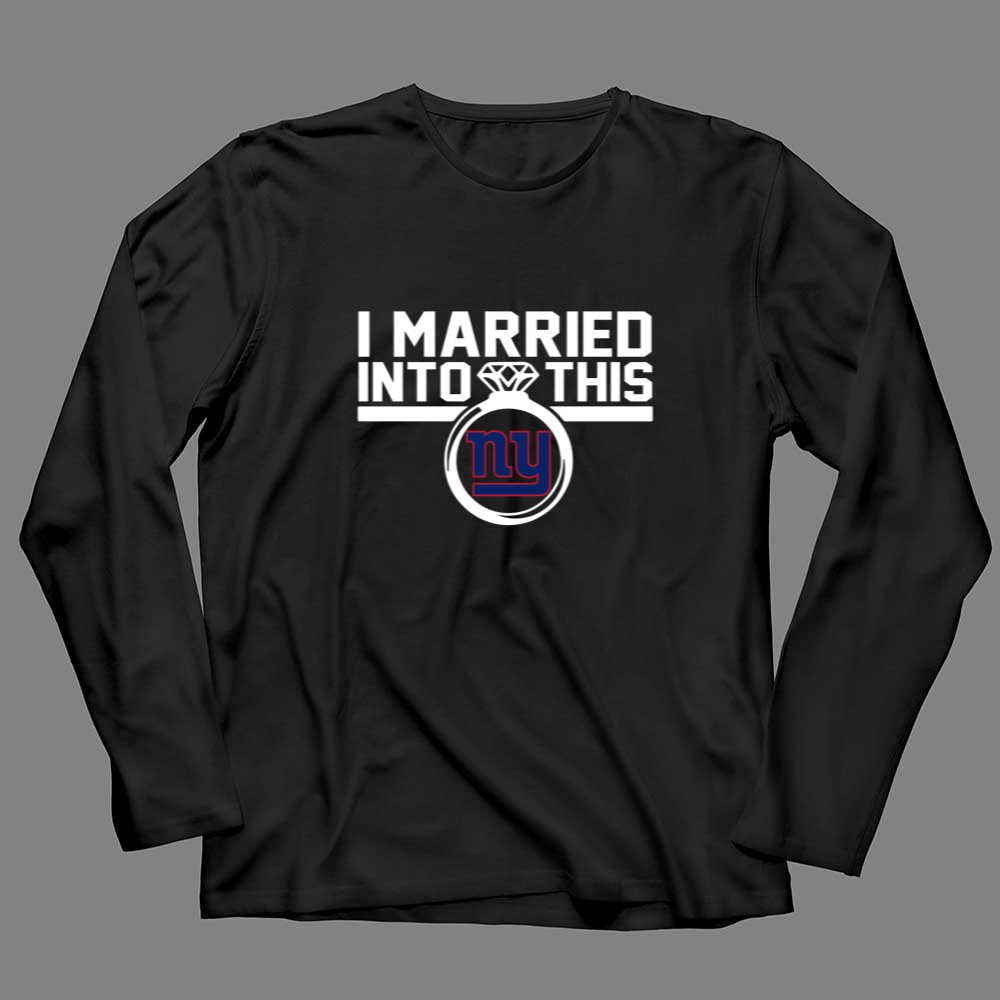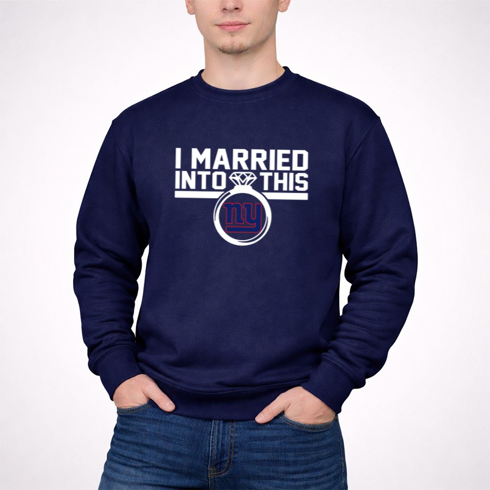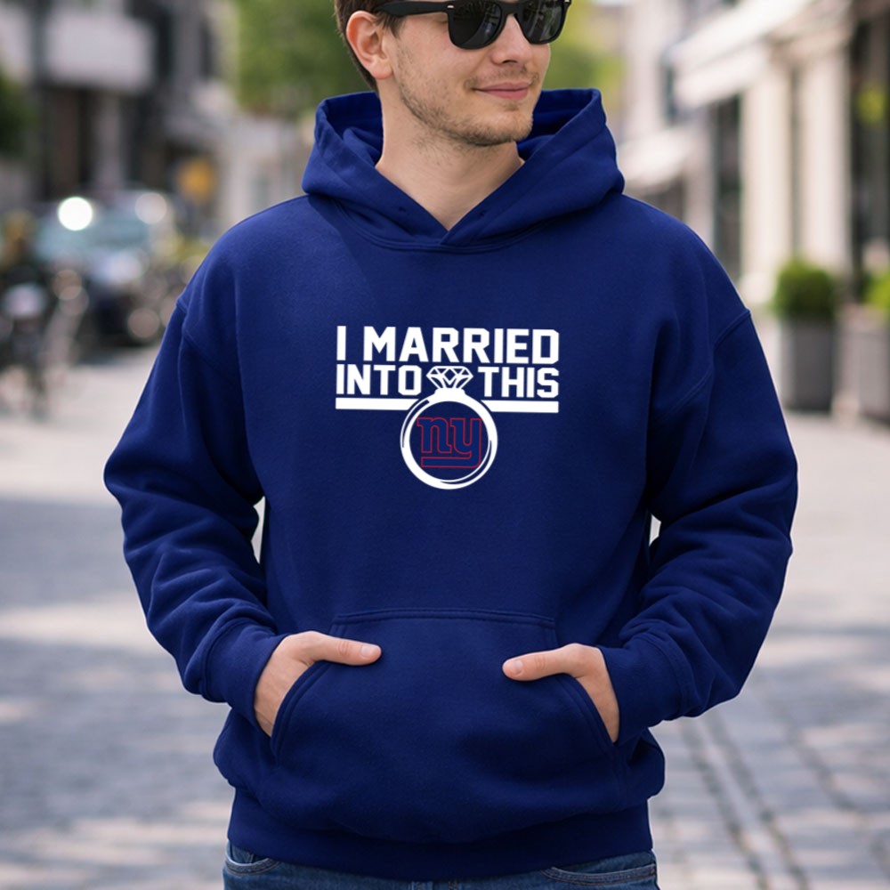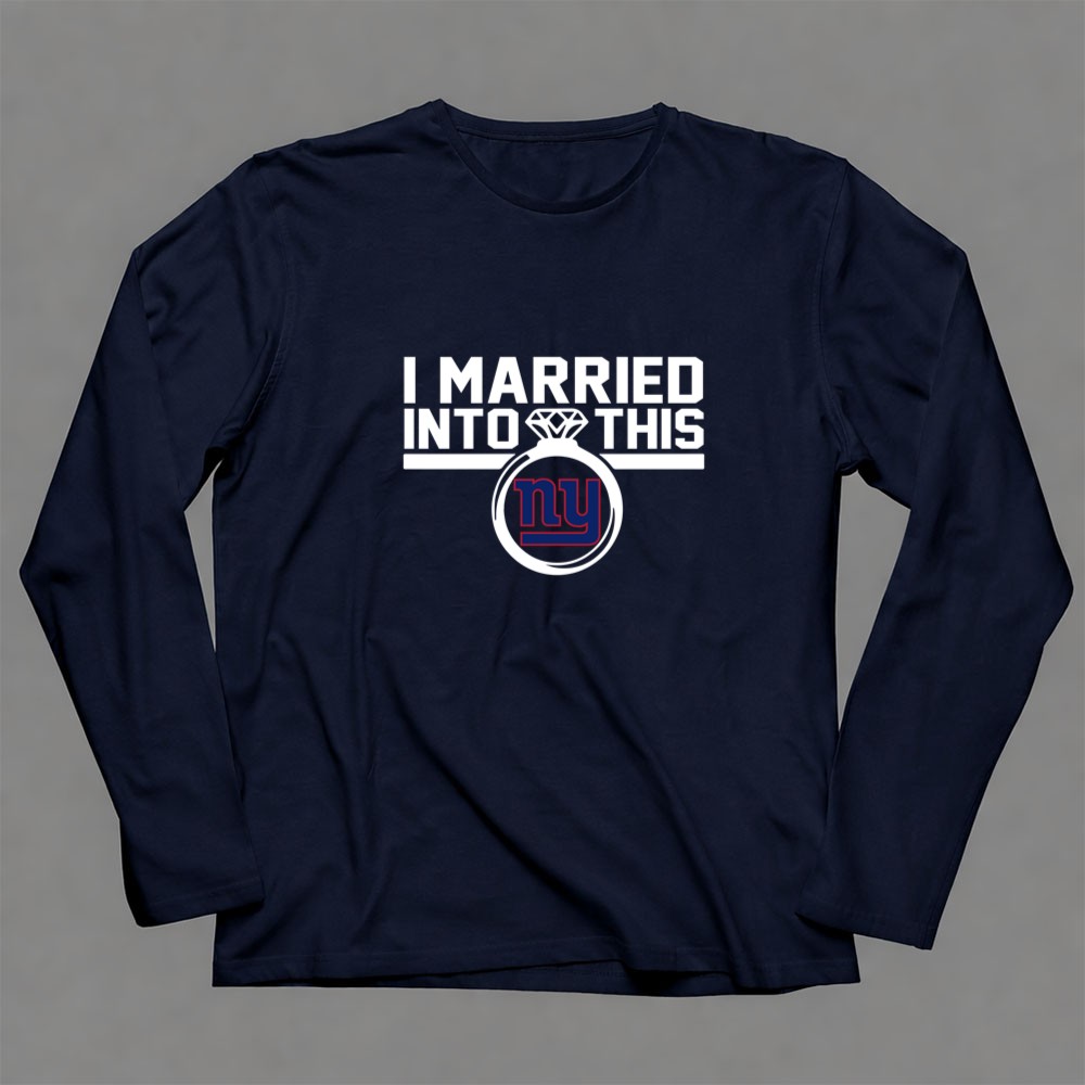 This design captures the playful spirit of merging lives and passions, celebrating your journey as a couple while showcasing your loyalty to the Giants. The bold typography and modern casual style reflect a vibrant NYC sports culture, making it a statement piece that resonates with NFL marriage humor. It’s more than just a shirt; it’s a badge of honor for those who proudly support their team and each other.