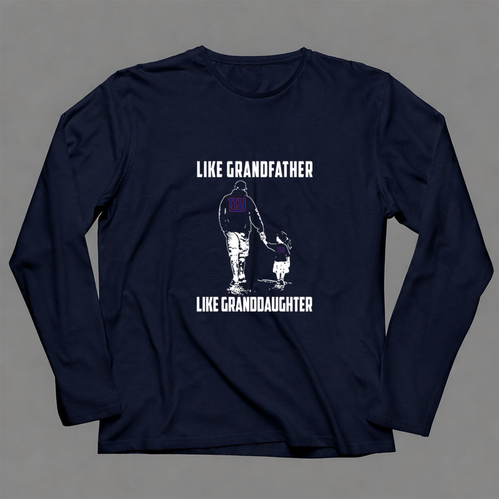This design embodies the enduring love that flows through generations of New York Giants fans. The phrase ‘Like Grandfather Like Granddaughter’ speaks to the heart of family connections, celebrating both the game and the special moments shared between family members. Crafted in a minimalist style, it effortlessly blends sports pride with everyday wear.