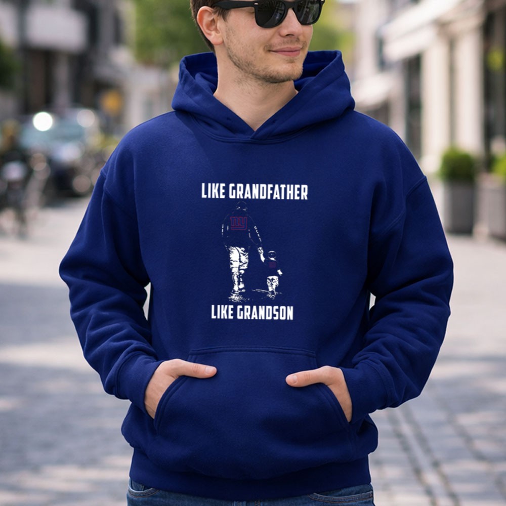 This design pays homage to the cherished connection between a grandfather and grandson, both proudly donning their New York Giants gear. It captures the essence of family legacy and the joy of sharing game day moments together, resonating with the love for football that transcends generations.