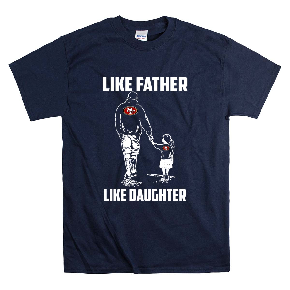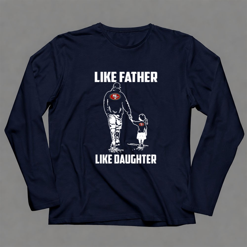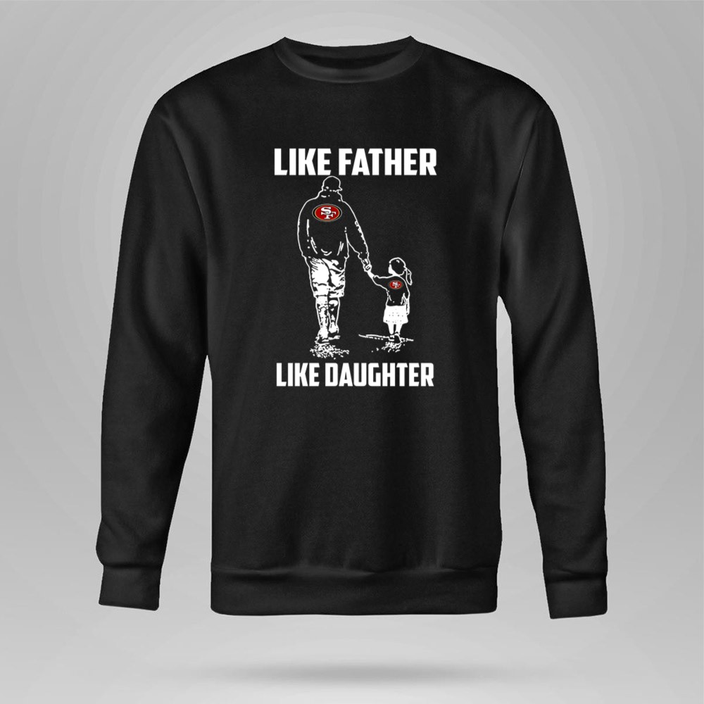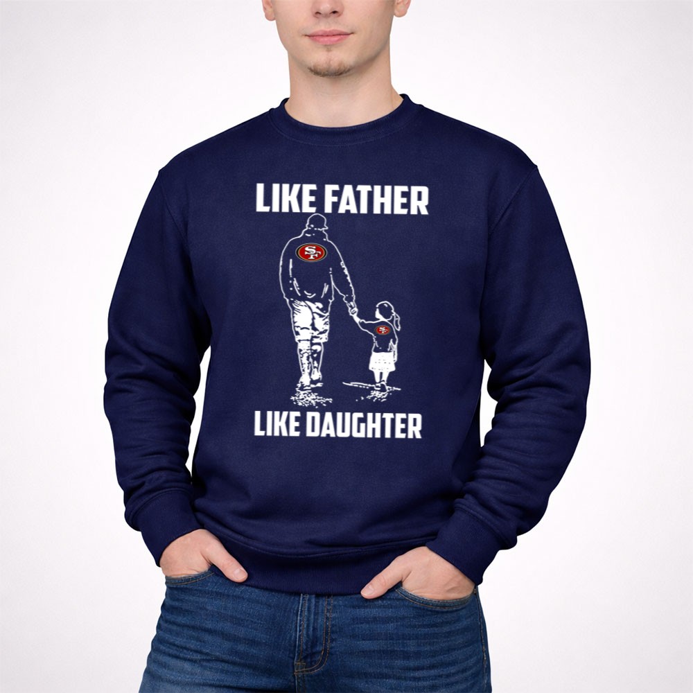 This design encapsulates the essence of family and loyalty, showcasing the iconic San Francisco 49ers logo as a symbol of shared passion. The minimalist aesthetic reflects modern streetwear while celebrating the unbreakable bond between father and daughter. Together, they embrace their love for the game and the cherished memories created at Levi’s Stadium.