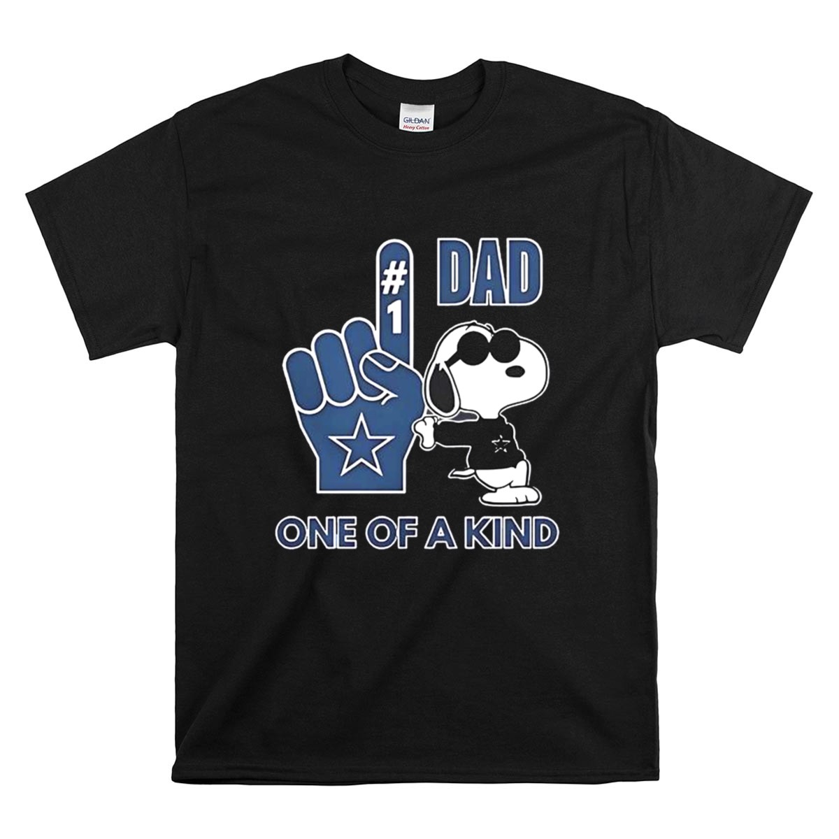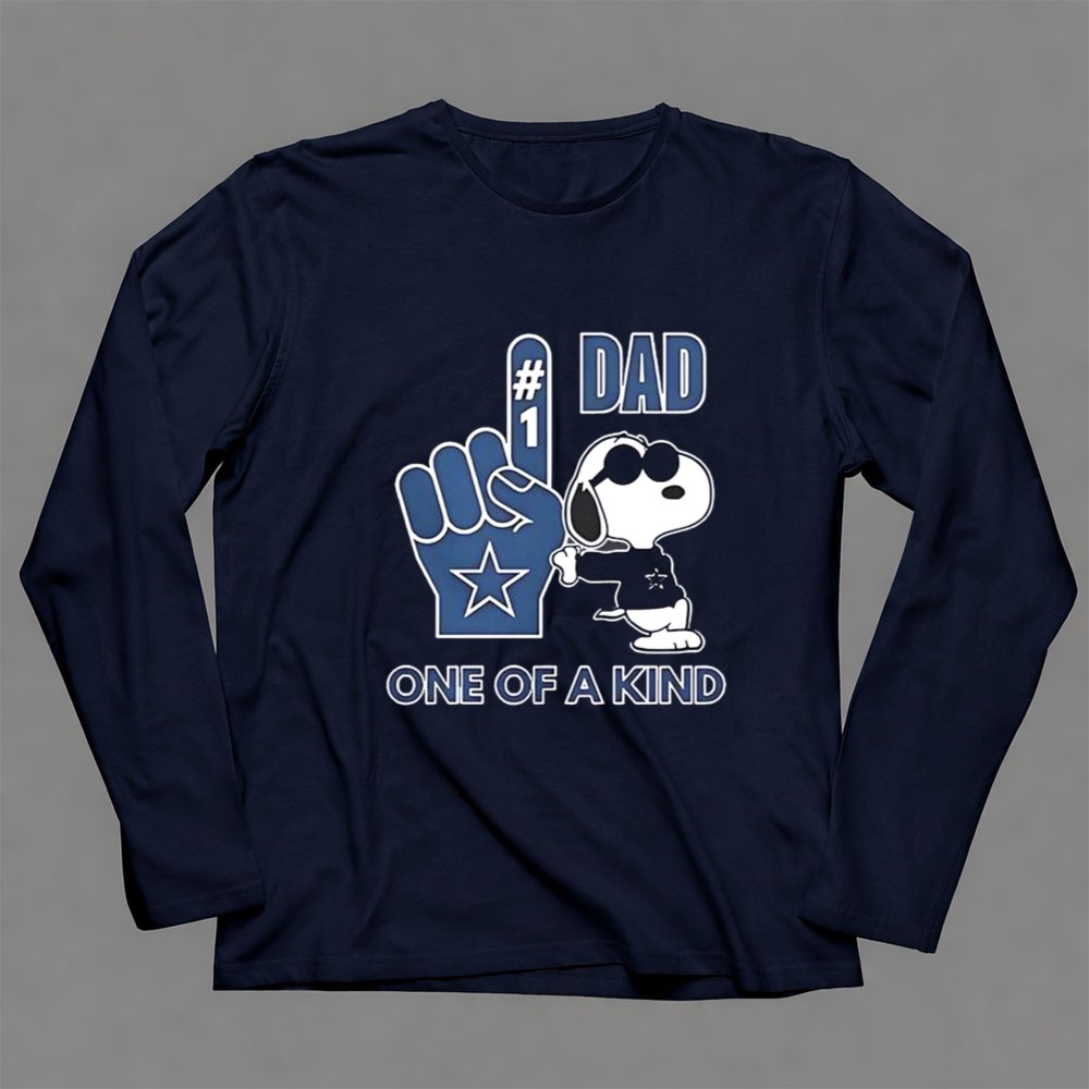This design brings together the beloved Snoopy character and the Dallas Cowboys, creating a heartfelt tribute to both family and team loyalty. The phrase ‘ONE OF A KIND’ perfectly encapsulates the unique relationship between a father and child, making it an ideal choice for any devoted Cowboys fan.